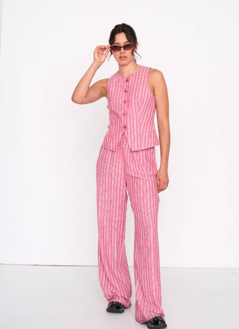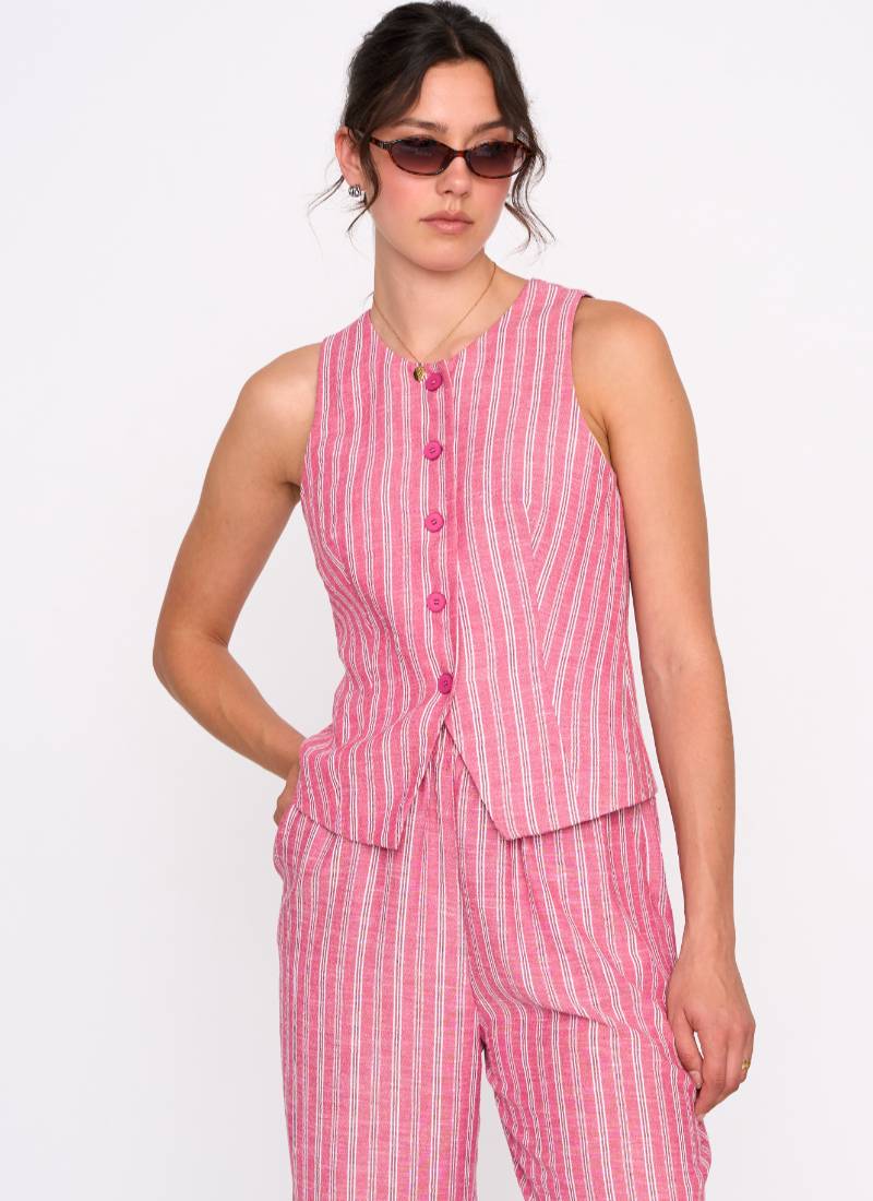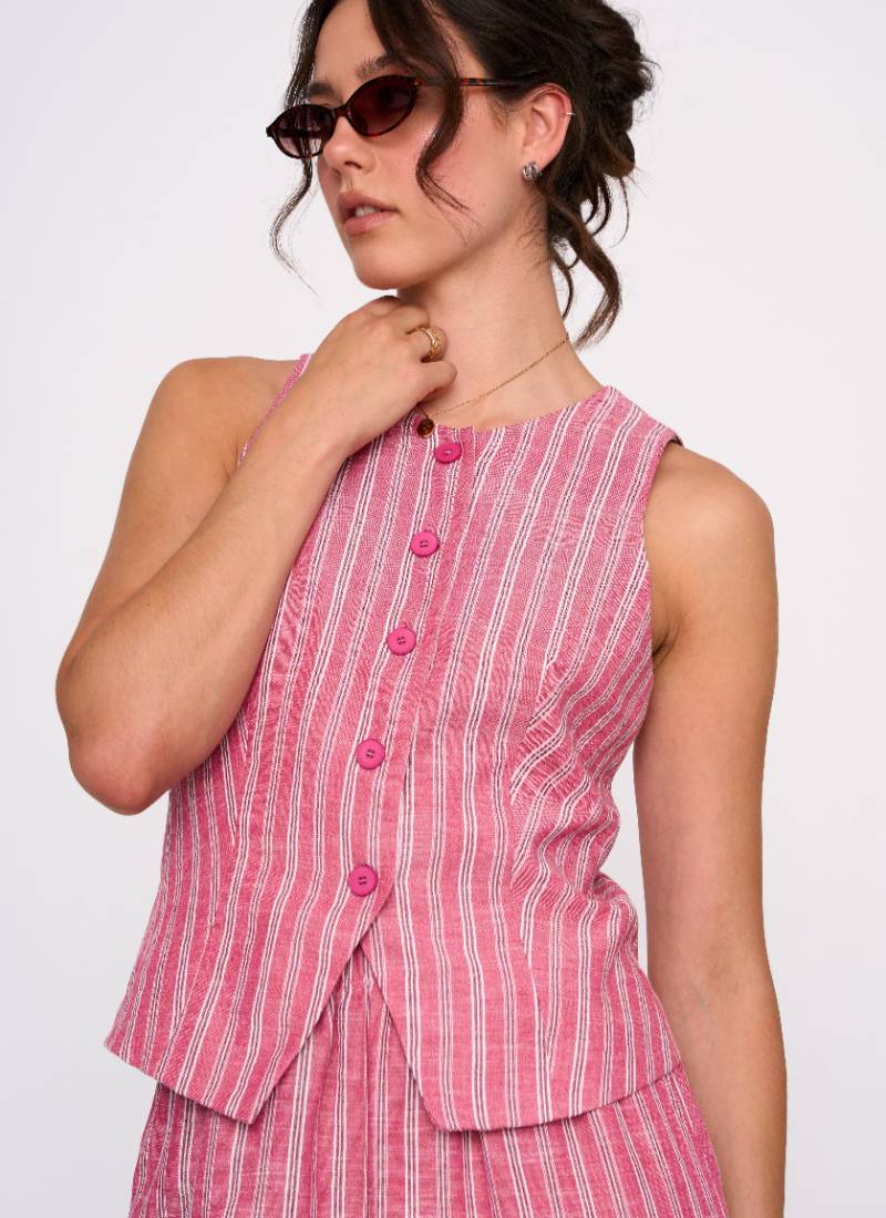 Ριγέ Ροζ Γιλέκο 24 Colours